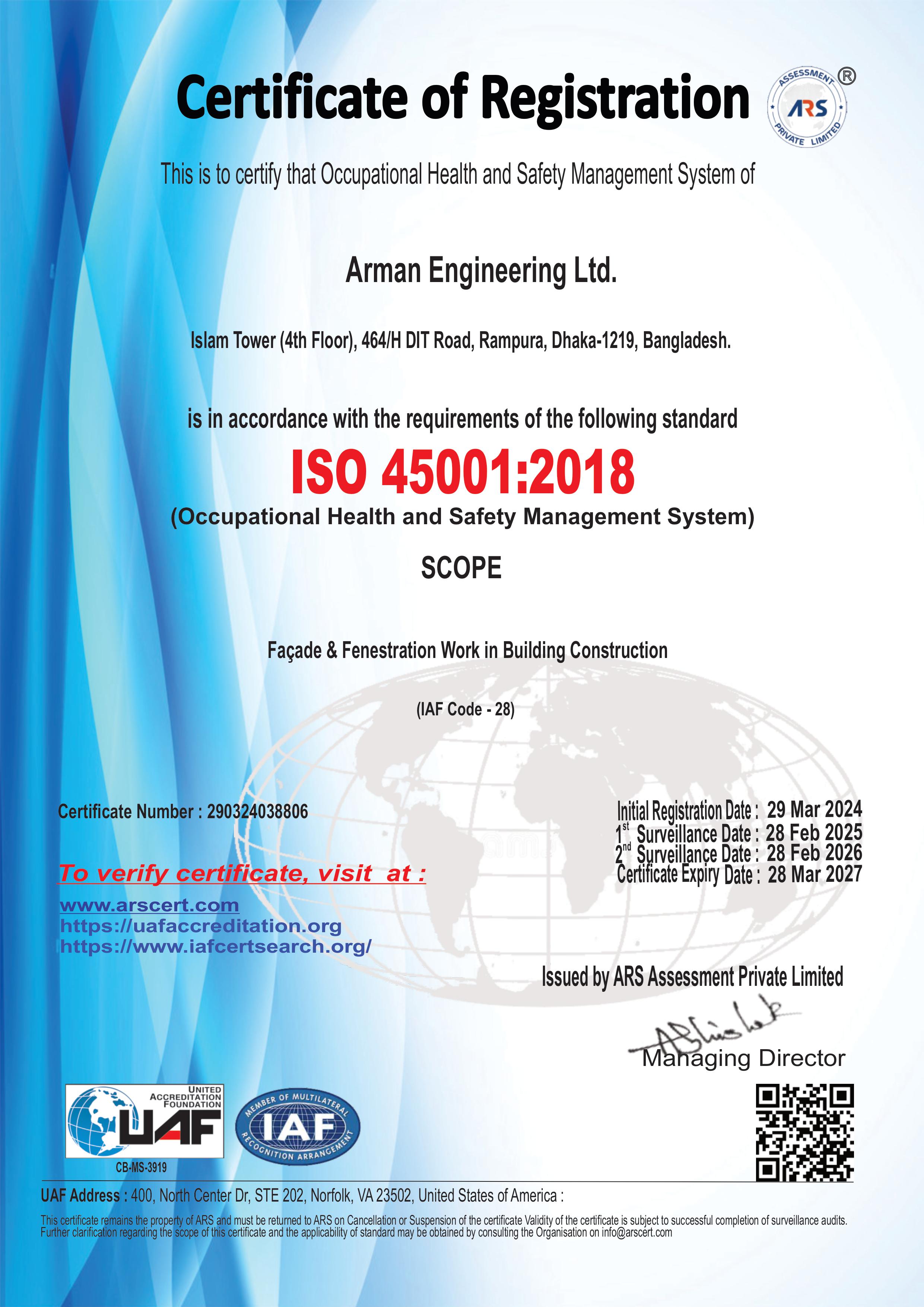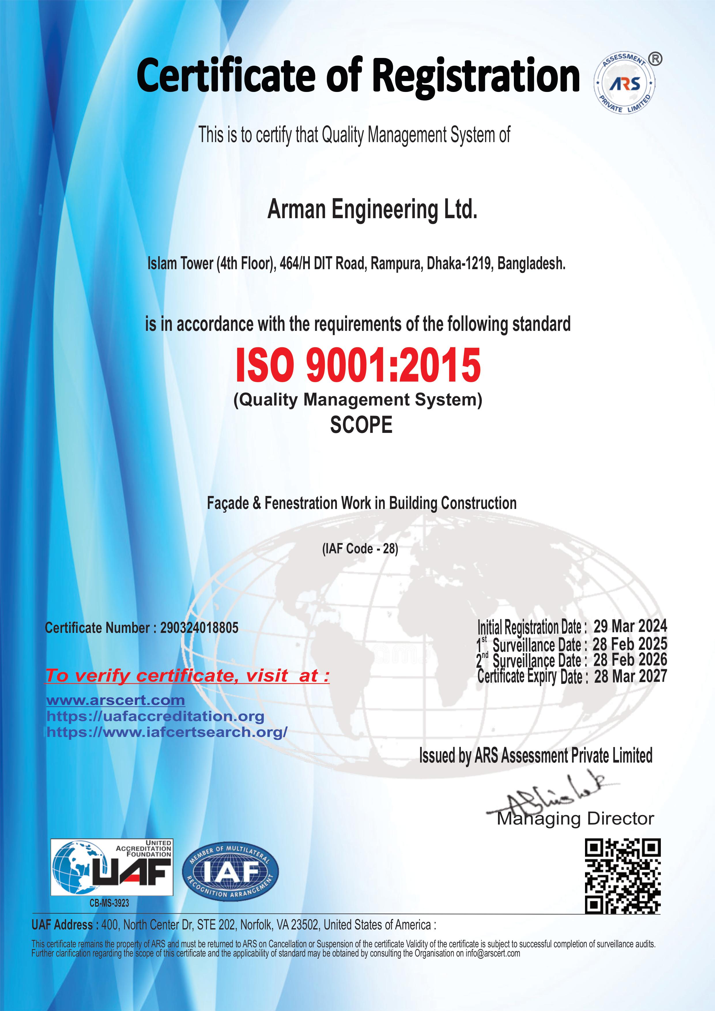 At Arman Engineering Ltd., quality is non-negotiable. We are proud holders of ISO9001:2015 and ISO45001:2018 certifications, a testament to our unwavering commitment to delivering products and services of the highest standards. Our rigorous quality control measures ensure that every project we undertake reflects our dedication to excellence.